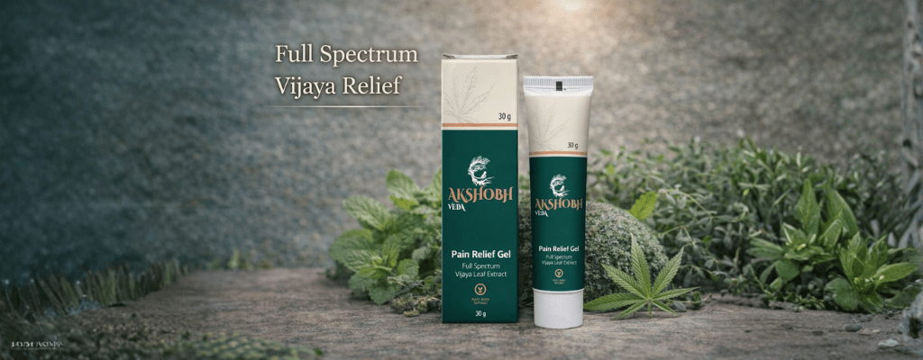 At the foundation of Akshobh Veda Pain Relief Gel lies Vijaya leaf extract from Cannabis Sativa. This ancient medicinal plant has been used in Ayurveda for thousands of years for pain management, and modern science has revealed why it’s so effective. Vijaya compounds interact with receptors present throughout your skin and underlying tissues, modulating pain signals at their source while simultaneously reducing inflammatory responses.