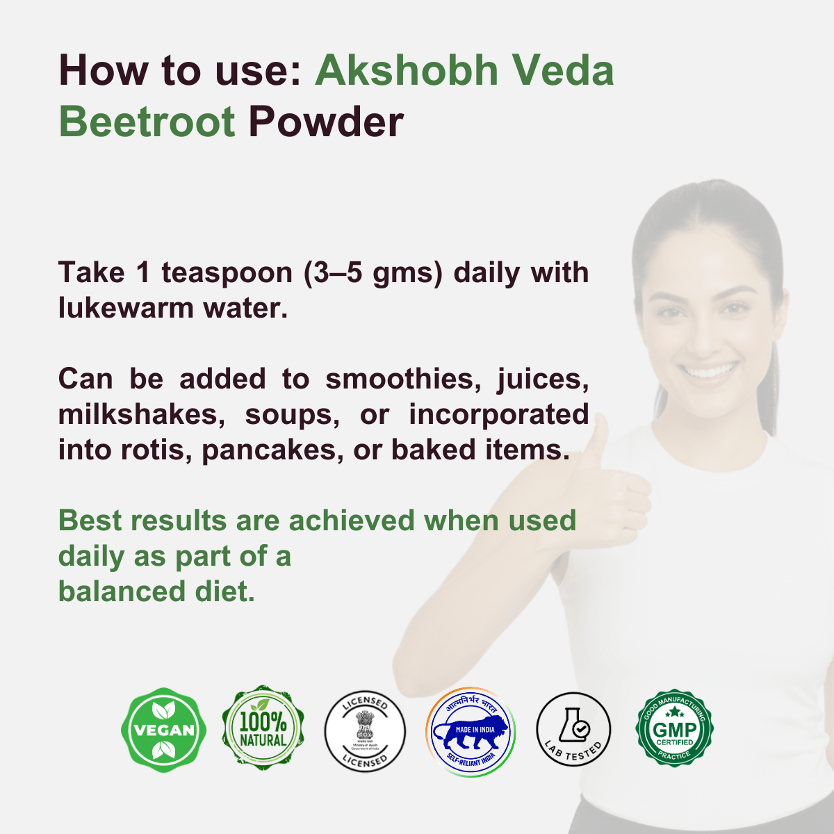 - Best results are achieved when used daily as part of a balanced diet.